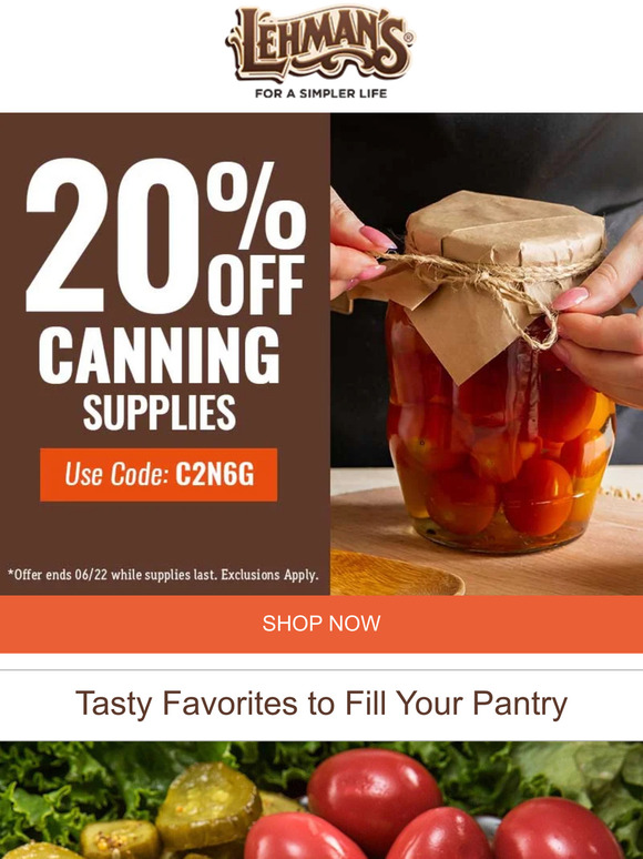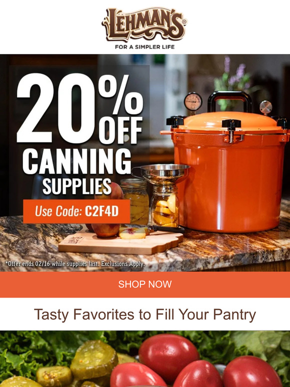 Lehman's Stock Up and Save 20 on Canning Supplies Today 🌟 Milled