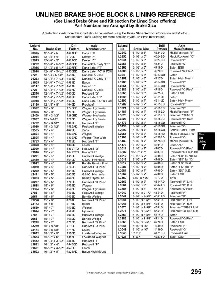 Leland Brake Shoe Catalog PDF Transport Vehicles