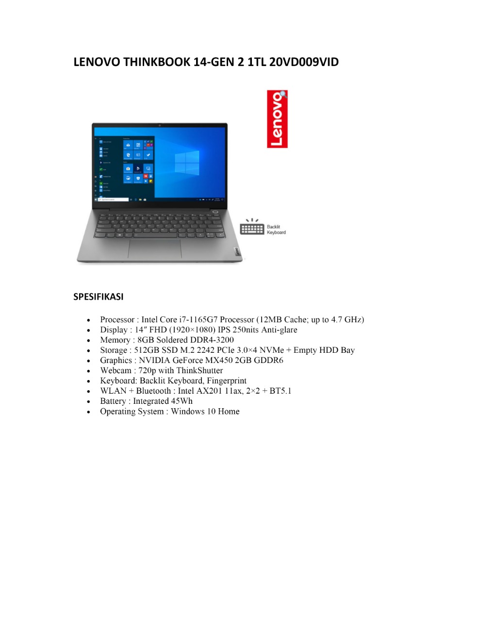 LAPTOP LENOVO THINKBOOK 14 GEN 2 1TL 20VD009VID eKatalog ITS