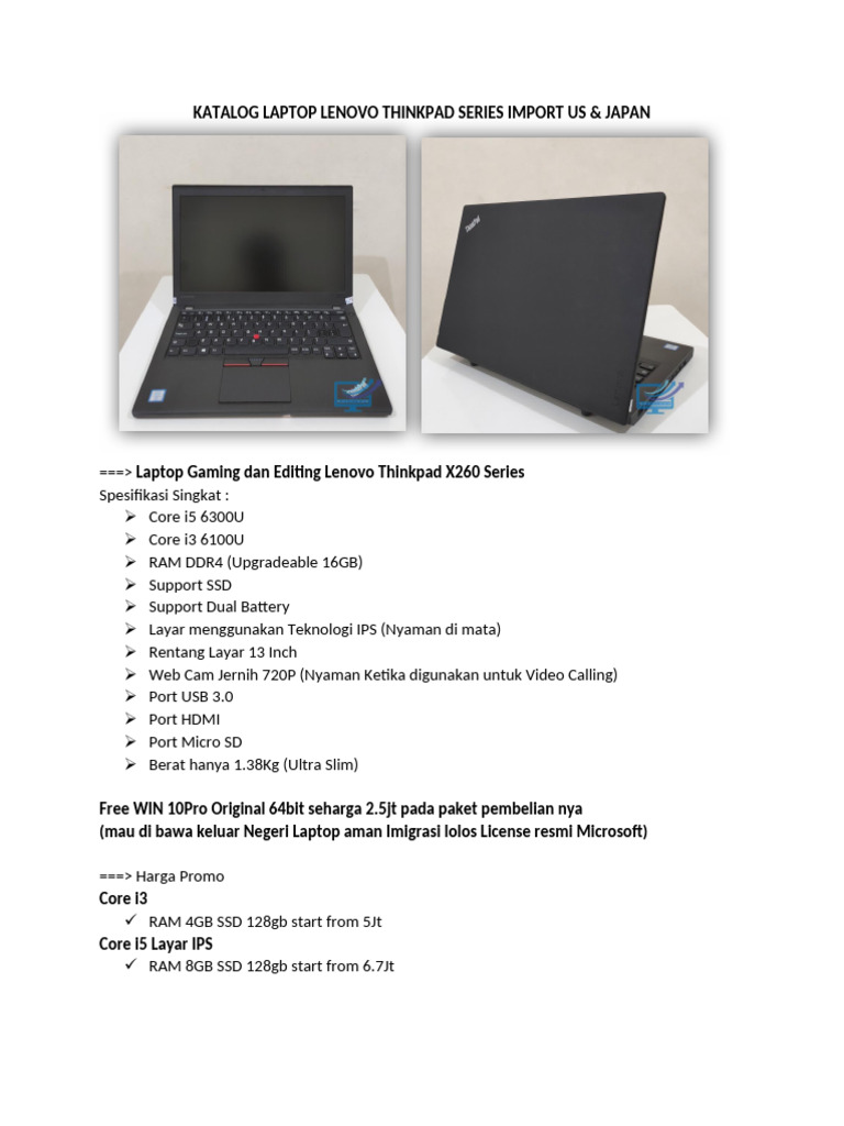 Katalog Laptop Lenovo Thinkpad Series Import Us PDF