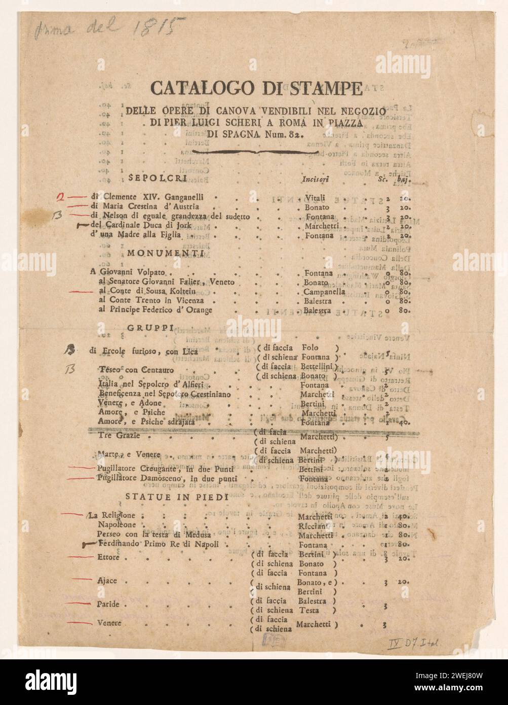 Catalog with prints to Antonio Canova available at Pier Luigi Scheri in