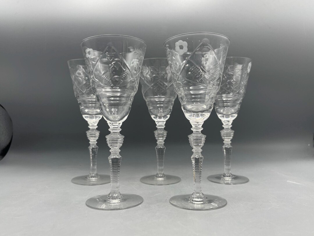 Libbey Rock Sharpe Etched Crystal Wine Glasses Set of 5 20072 Etsy