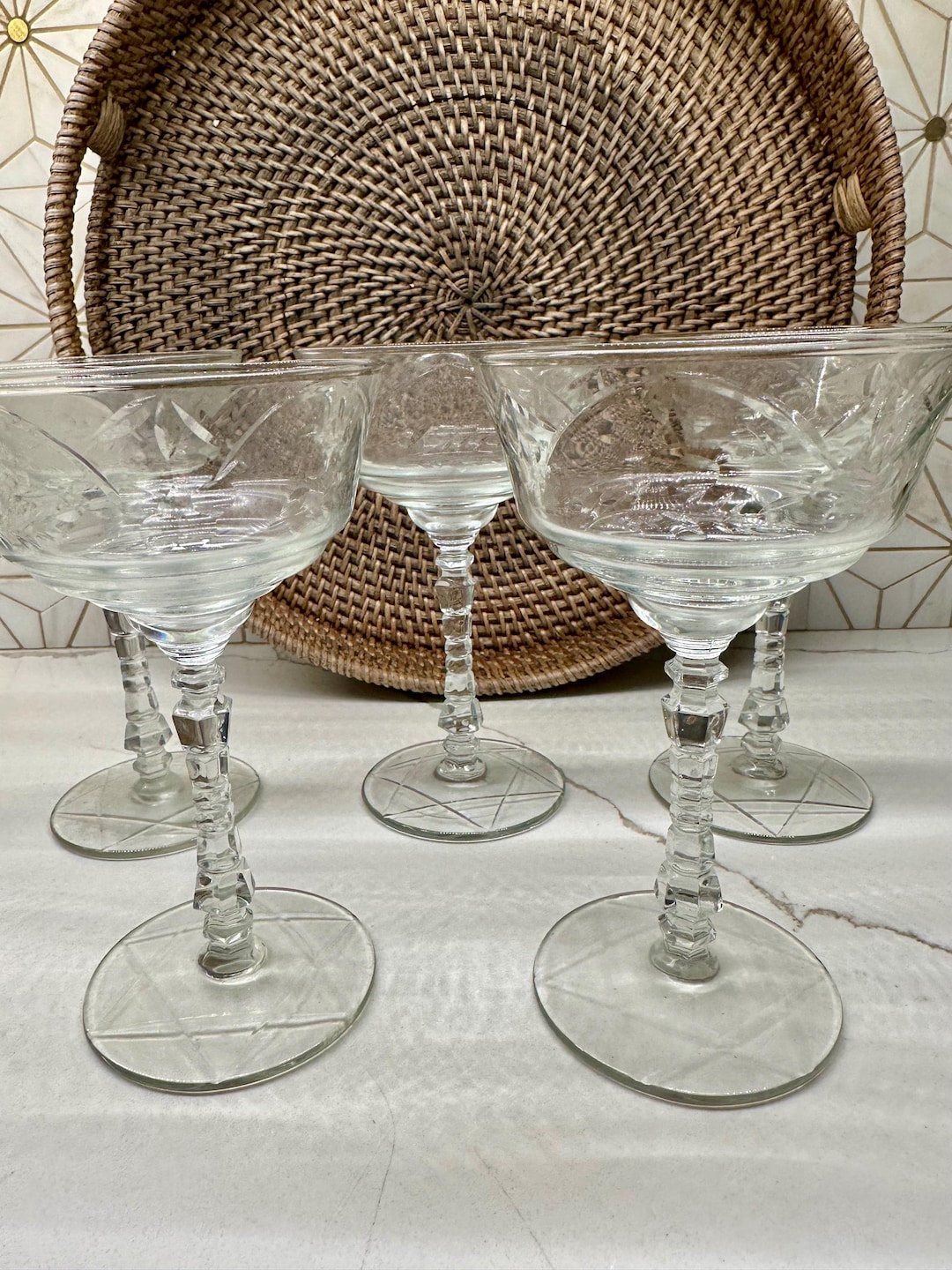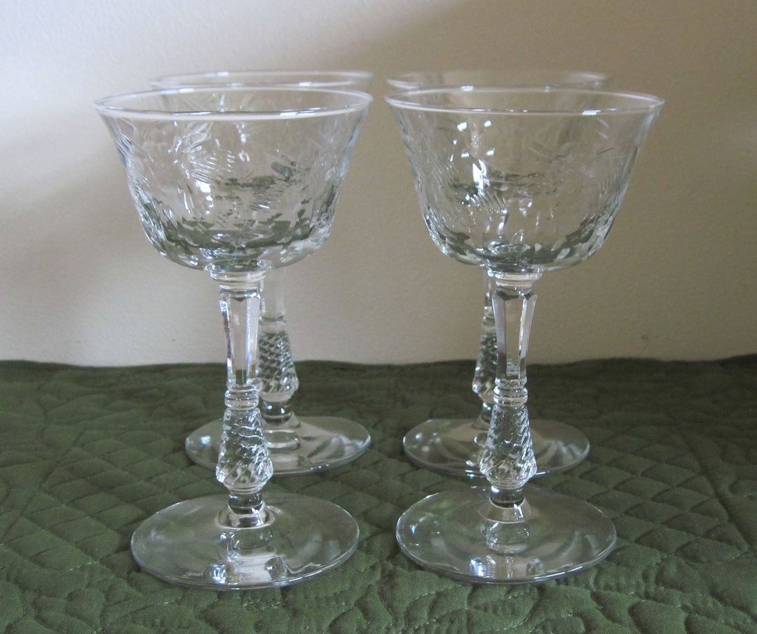 Vintage Libbey Rock Sharpe Crystal Garland Etched Crystal Stemmed