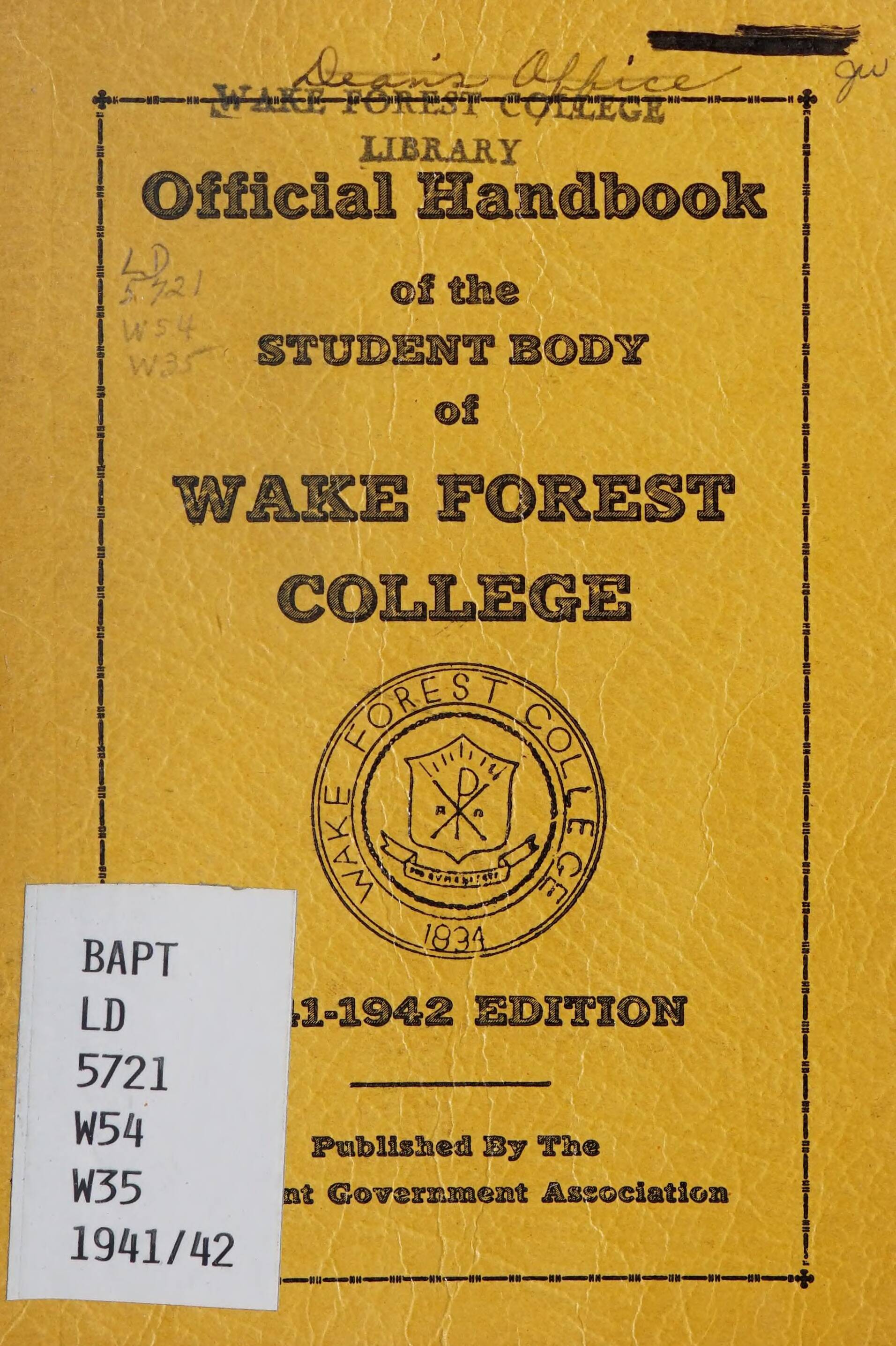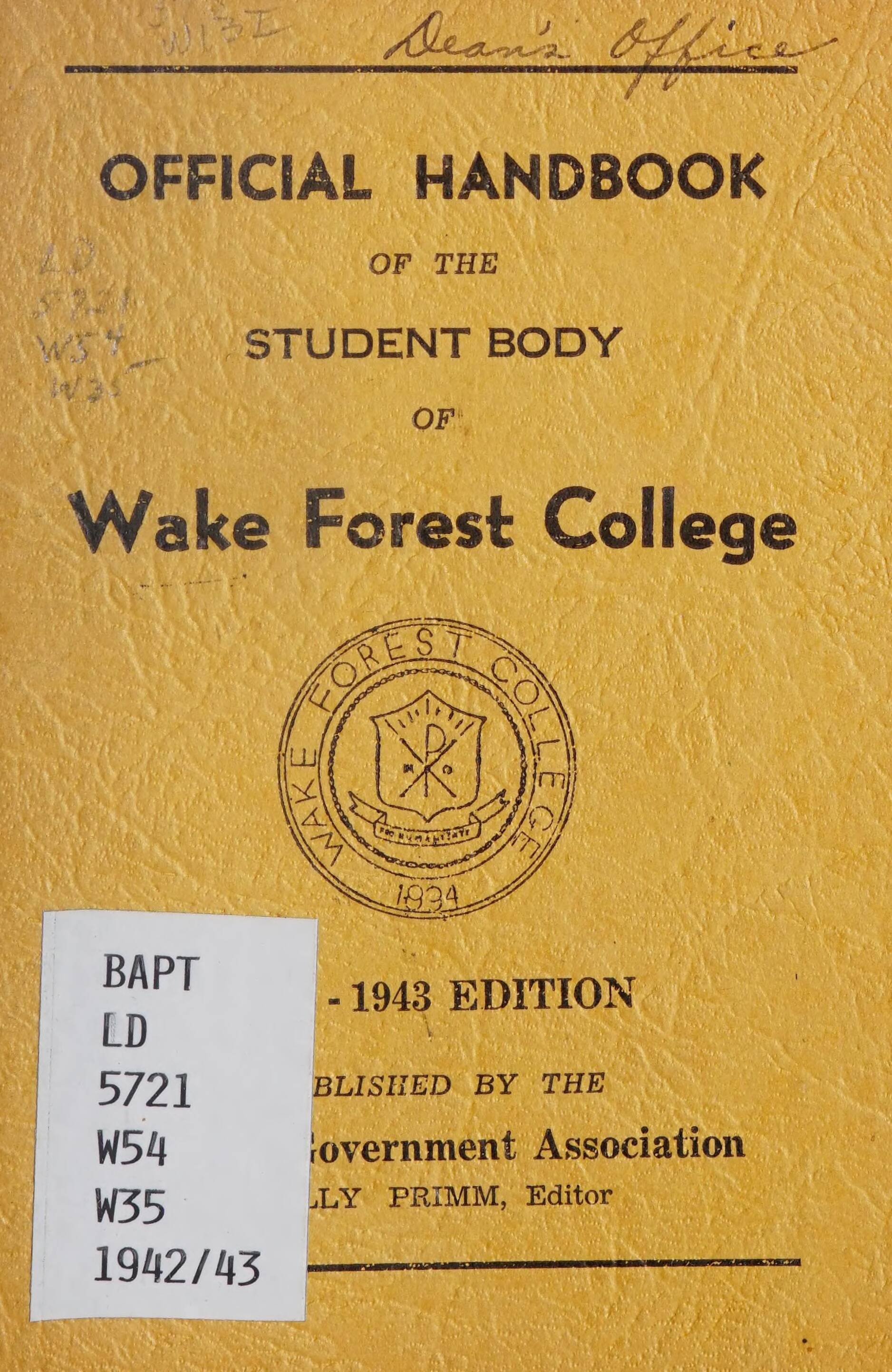 ![Wake Forest College Student Handbook [19421943]](https://lib.digitalnc.org/record/239579/files/wakeforestcolleg1942wake_0001.jpg)