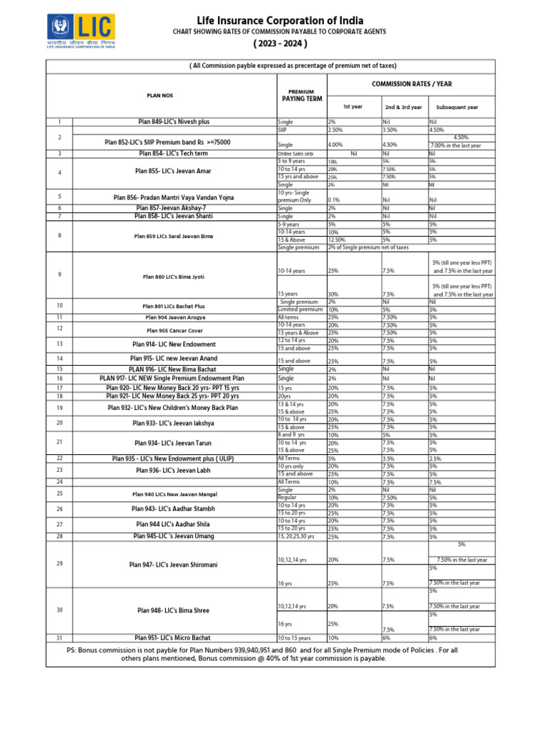 LIC Commission Chart PDF