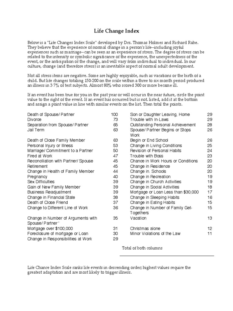 Life Change Index PDF Marriage Family