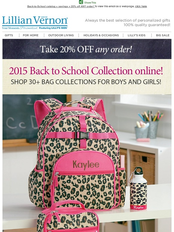 Lillian Vernon BacktoSchool catalog + savings = 20 off ANY order