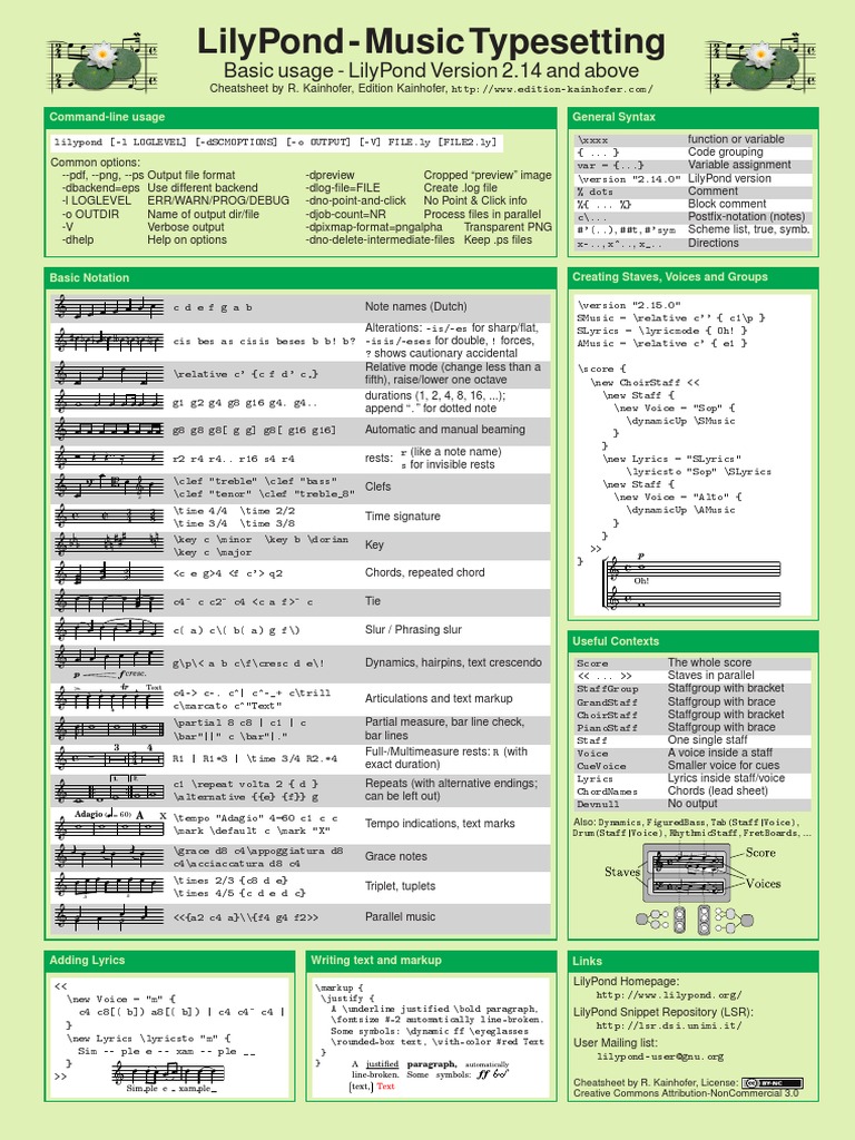 LilyPond CheatSheet PDF Clef Musical Compositions