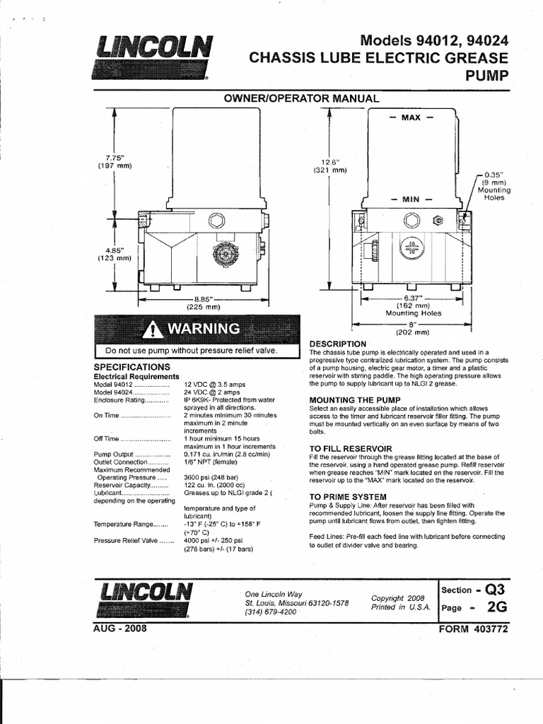 Lincoln Lube Model 94012 PDF Pump Manufactured Goods