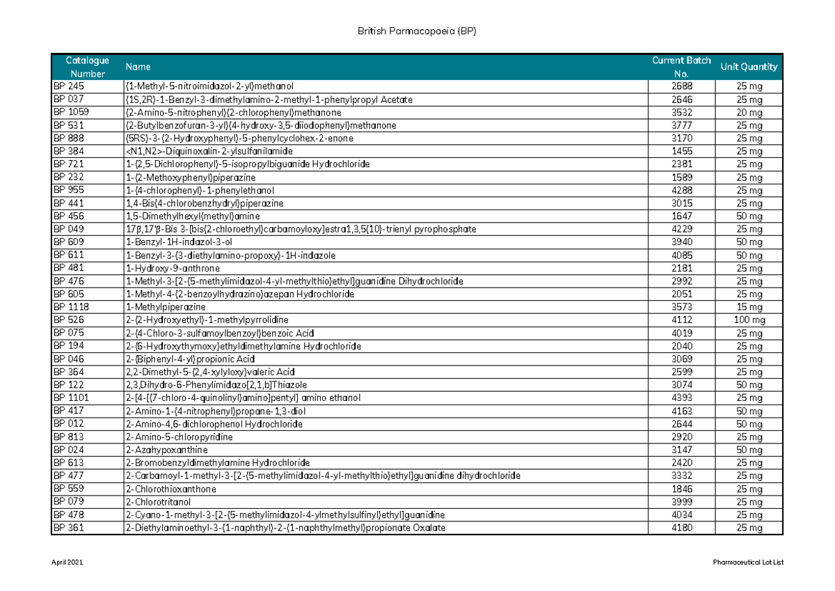 BP Catalogue Number Name Current Batch No. Unit Quantity BP 245 Studocu