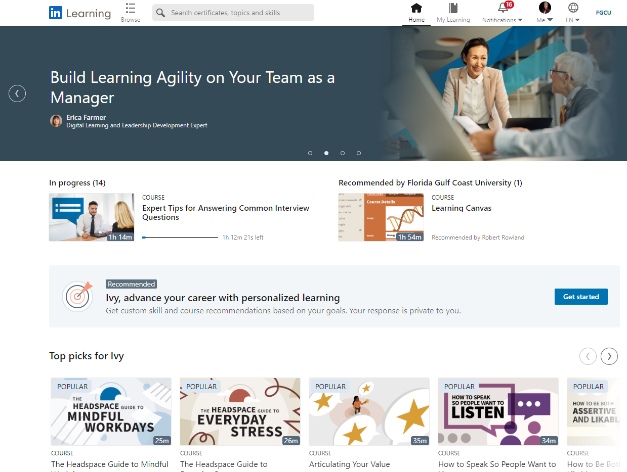 Getting Started with LinkedIn Learning Florida Gulf Coast University ITS