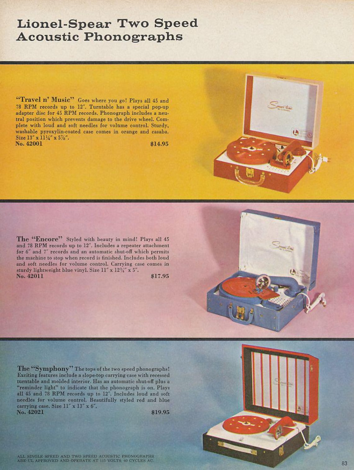 1962 Lionel Train, Lionelporter Science, Lionelspear Phonograph, and