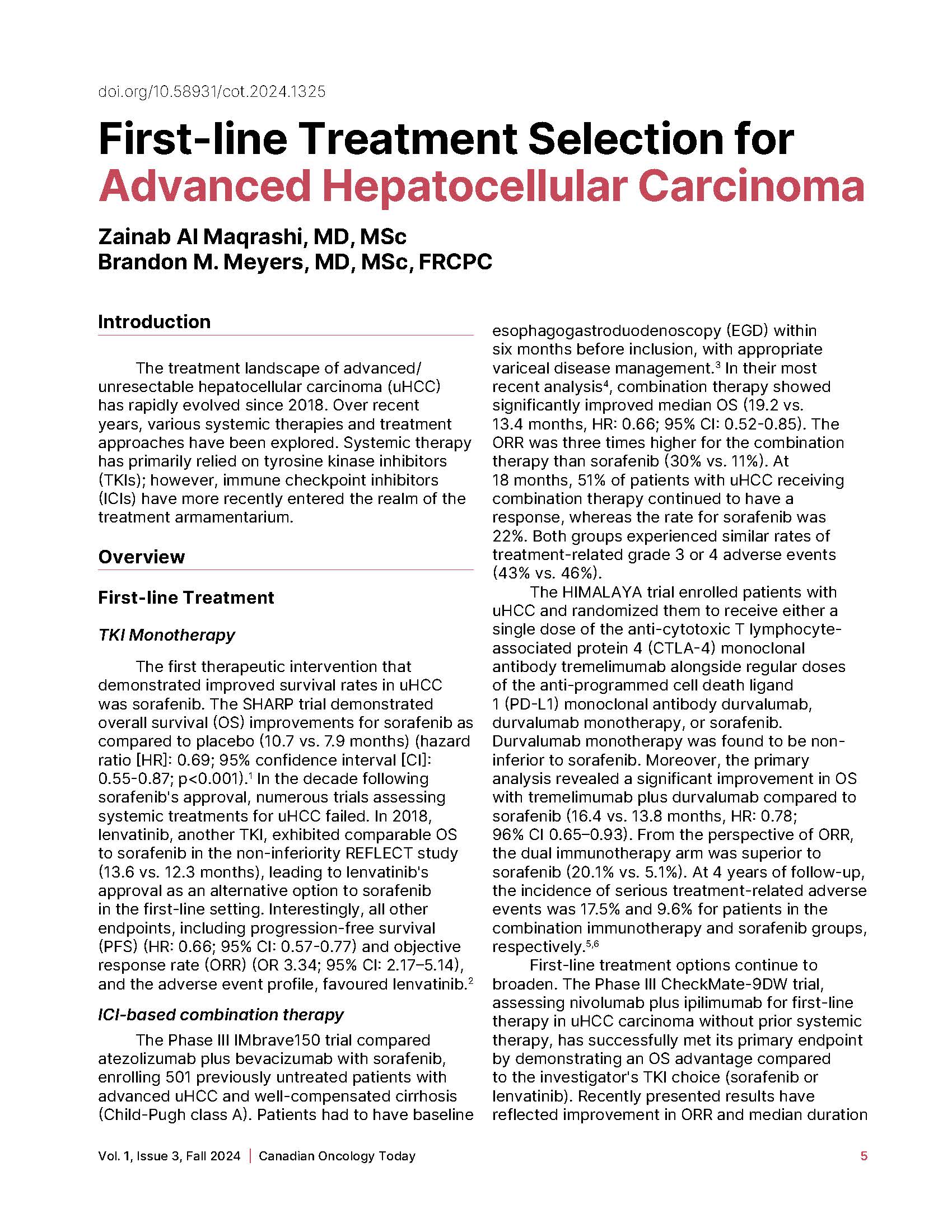 Firstline Treatment Selection for Advanced Hepatocellular Carcinoma