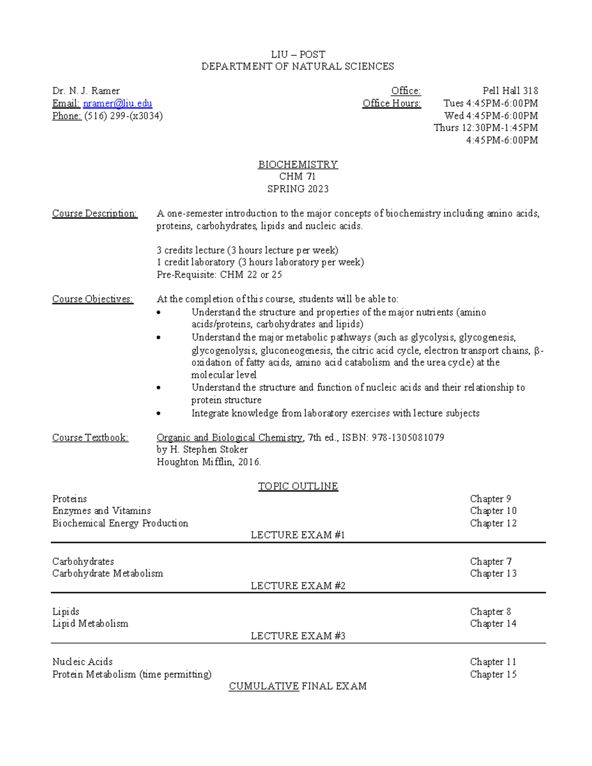 CHM 71 001 Syllabus (Spring 2023) LIU POST DEPARTMENT OF NATURAL