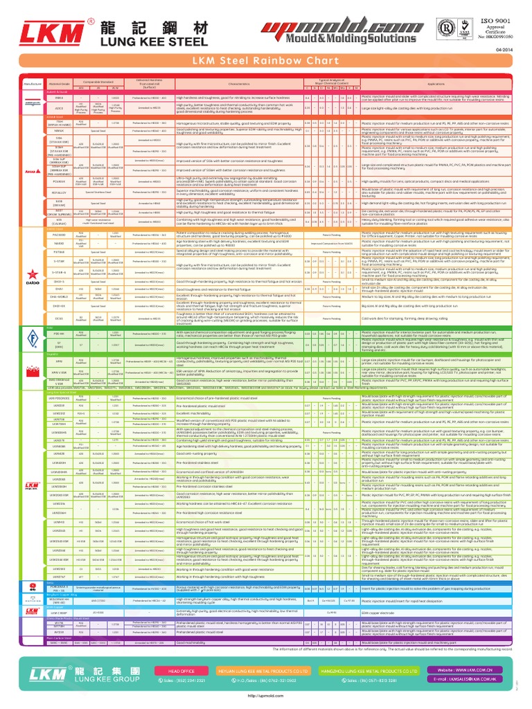 LKM Steel Rainbow Chart 2014 Upmold PDF Heat Treating Steel