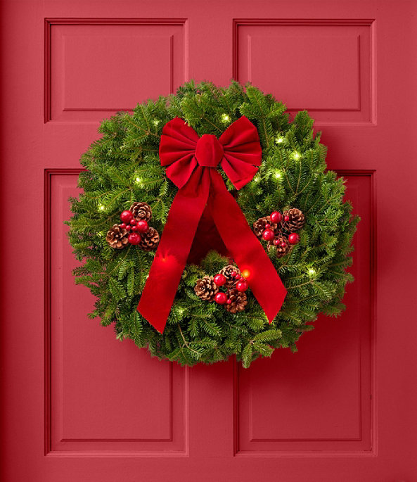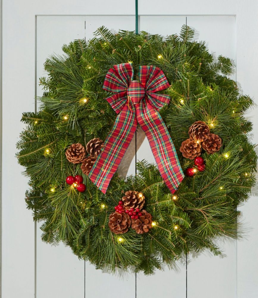 Tartan Christmas Fir Wreath, Lighted, 24" Fresh Wreaths & Greenery at