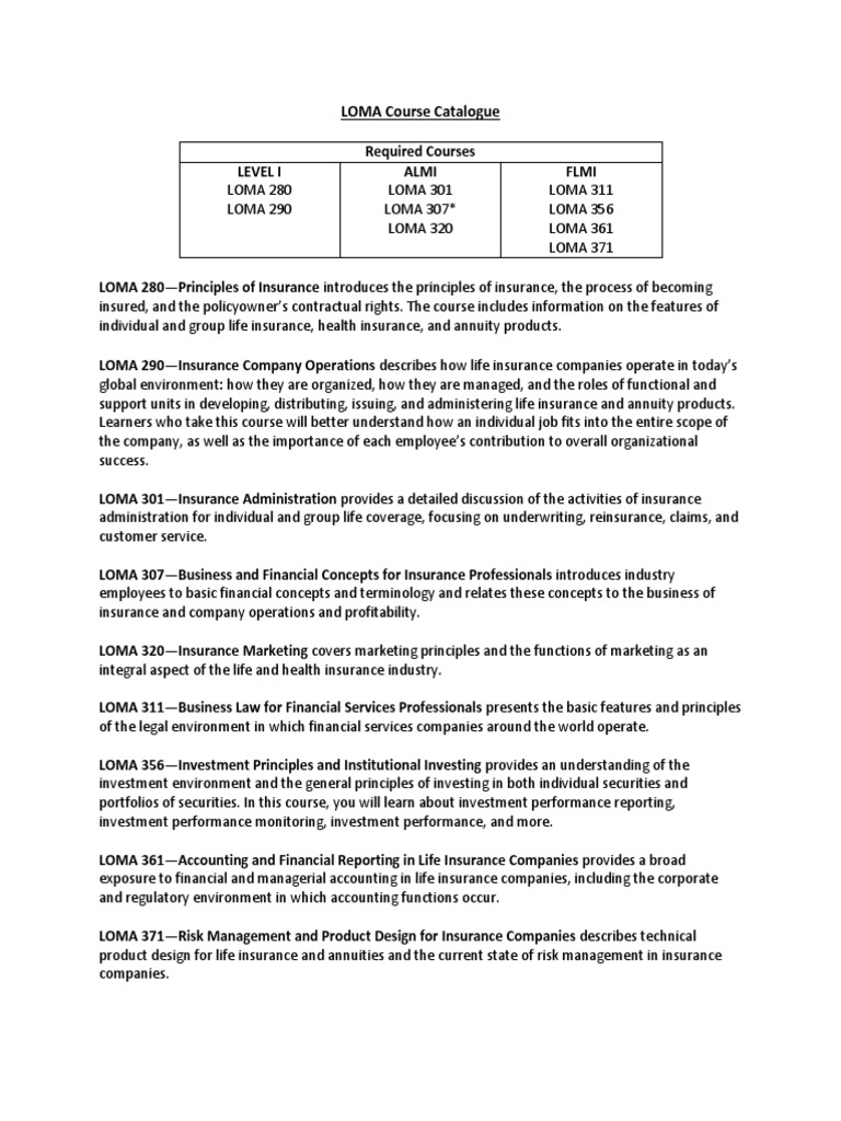 LOMA Course Overview Life Insurance Insurance