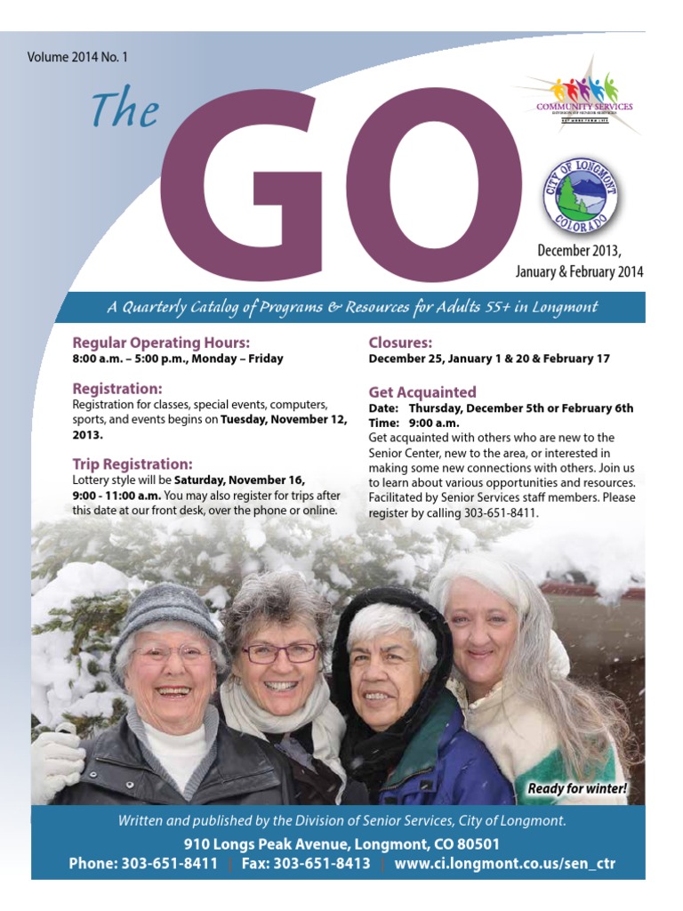 Longmont Senior Services GO Catalog, Winter 2014 and 2015 PDF