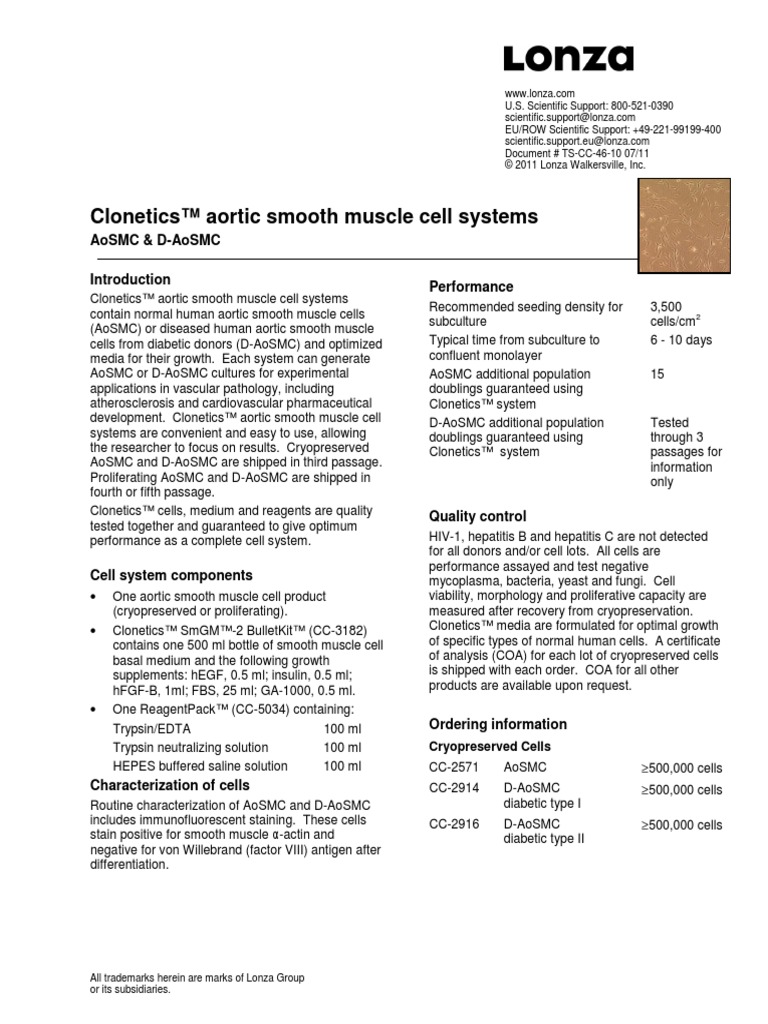 Lonza BenchGuides Aortic Smooth Muscle Cell Systems PDF