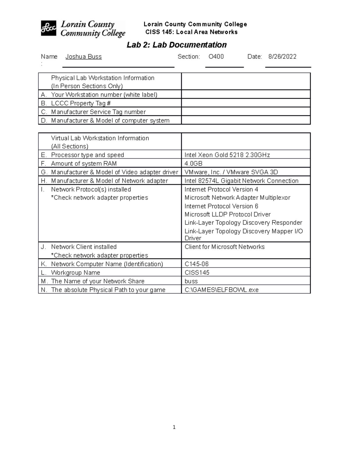 Buss Lab 2 Completed lab Lorain County Community College CISS 145