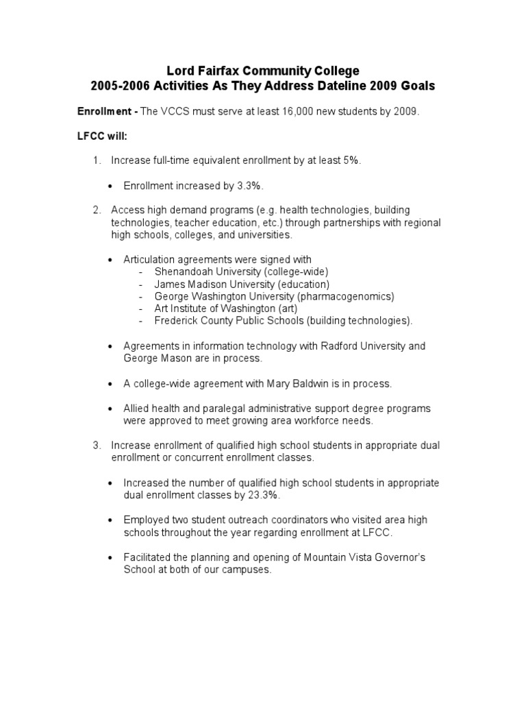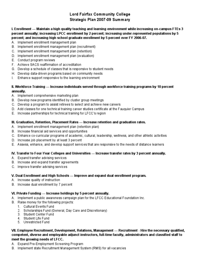 Lord Fairfax Community College Strategic Plan 200709 Summary PDF