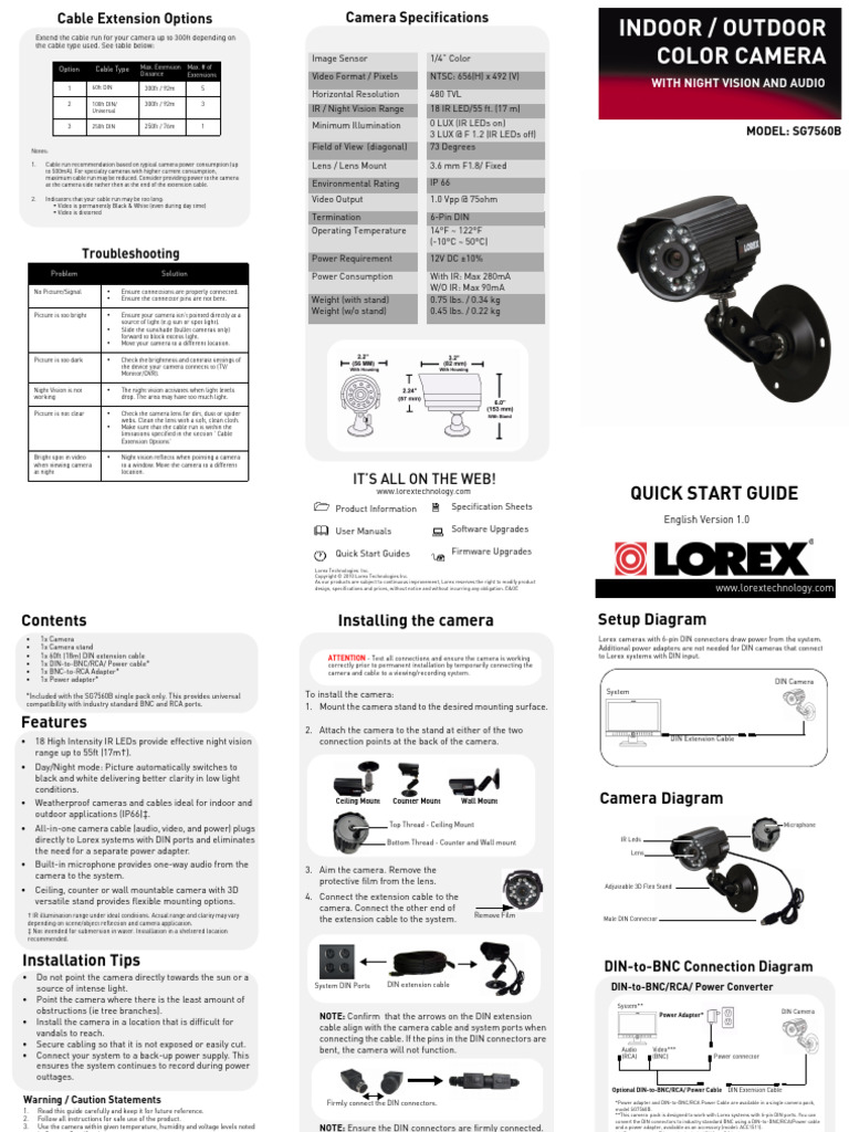 Lorex Sg7560b Trifoldqsg en r1 PDF Camera Video