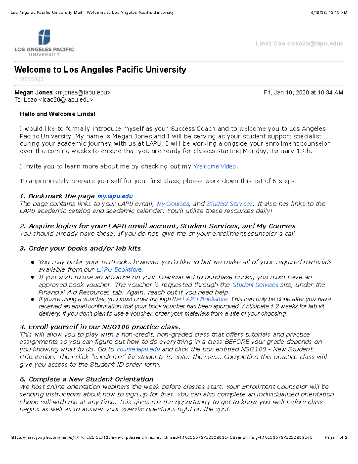 Los Angeles Pacific University Mail to Los Angeles Pacific
