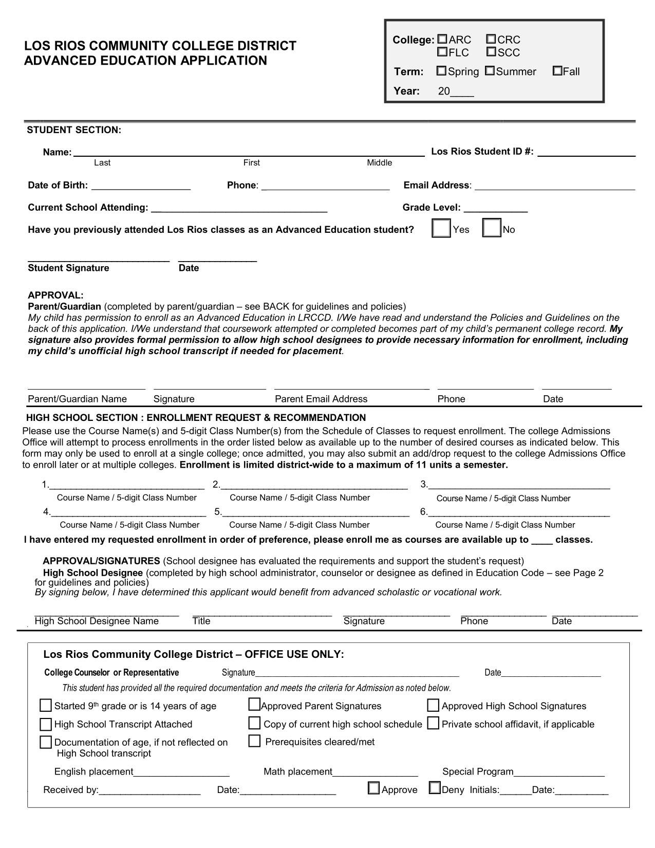 Los Rios Community College District Advanced Education Application Form