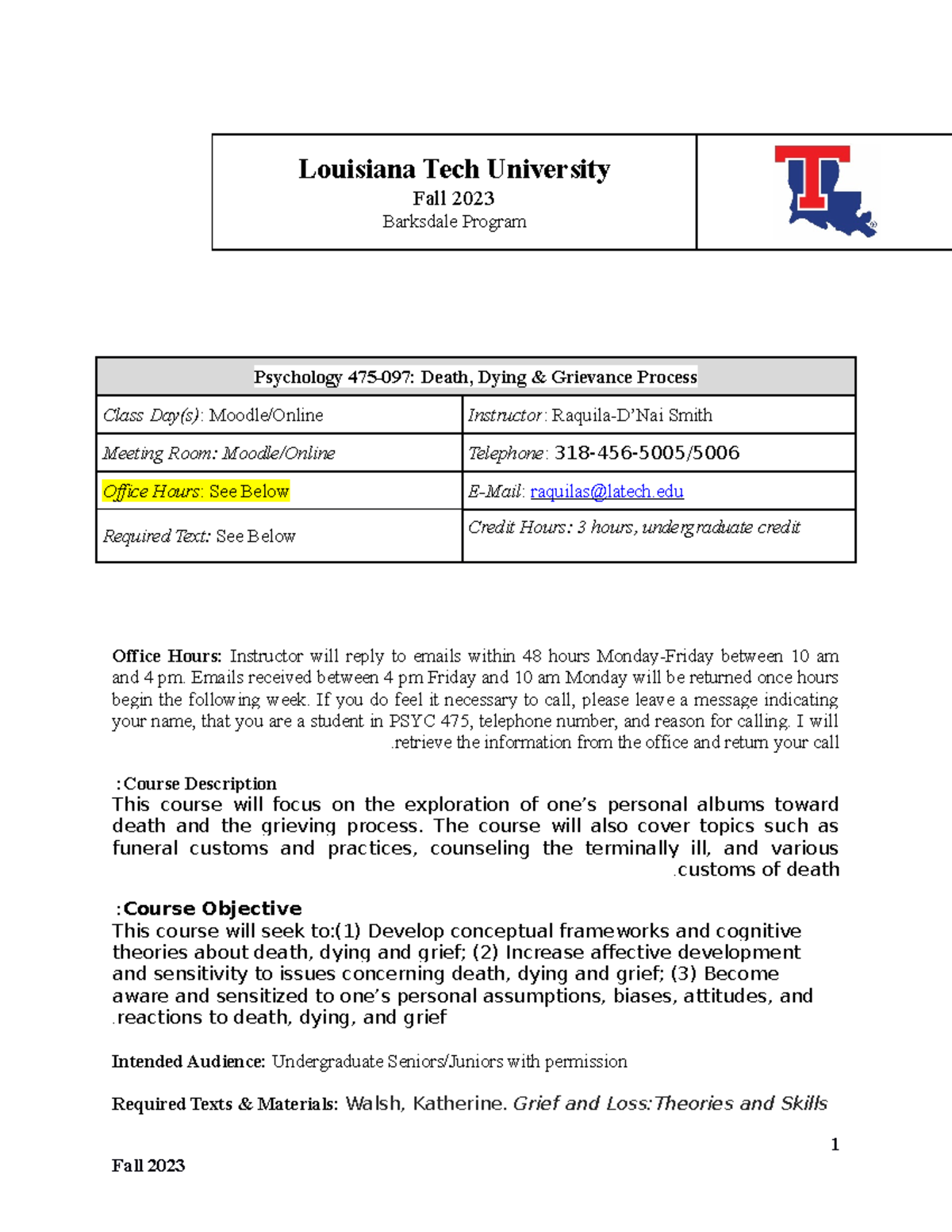 PSYC 475097 Fall 2023 syllabus Louisiana Tech University Fall 2023