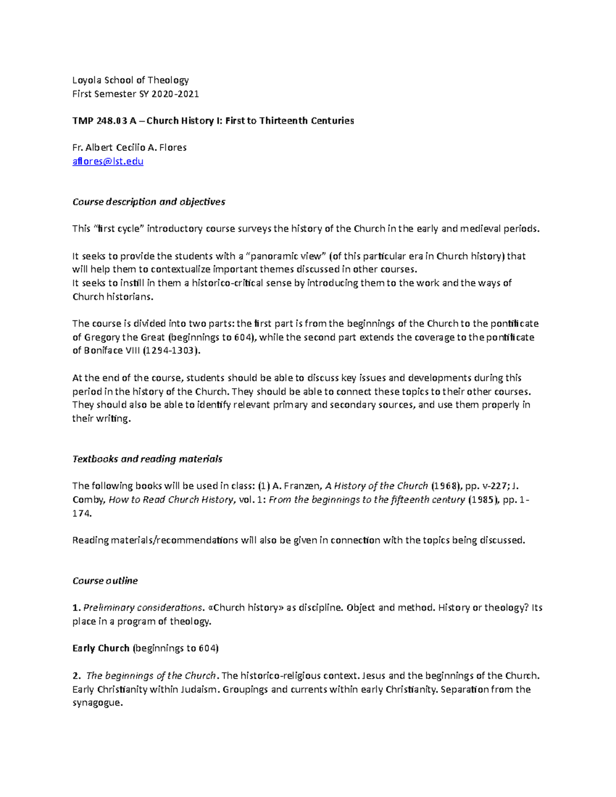 20200827 LST CH1 syllabus course outline Loyola School of Theology