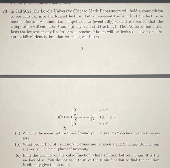 Solved 23. In Fall 2022, the Loyola University Chicago Math