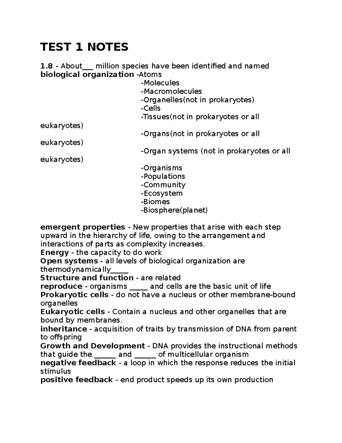 TEST 1 Notes biol 1201 lsu TEST 1 NOTES 1 About___ million species