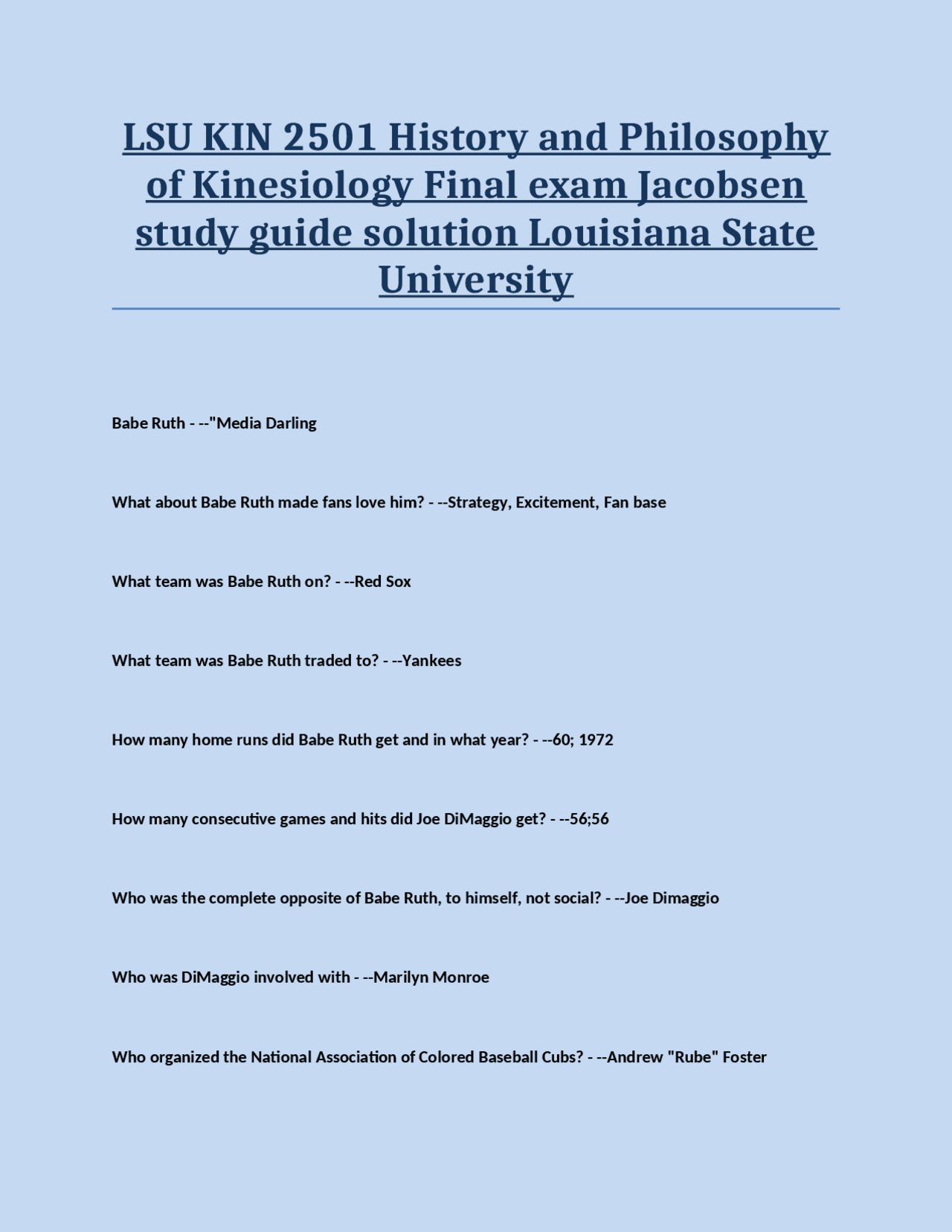 LSU KIN 2501 History and Philosophy of Kinesiology Final exam Jacobsen