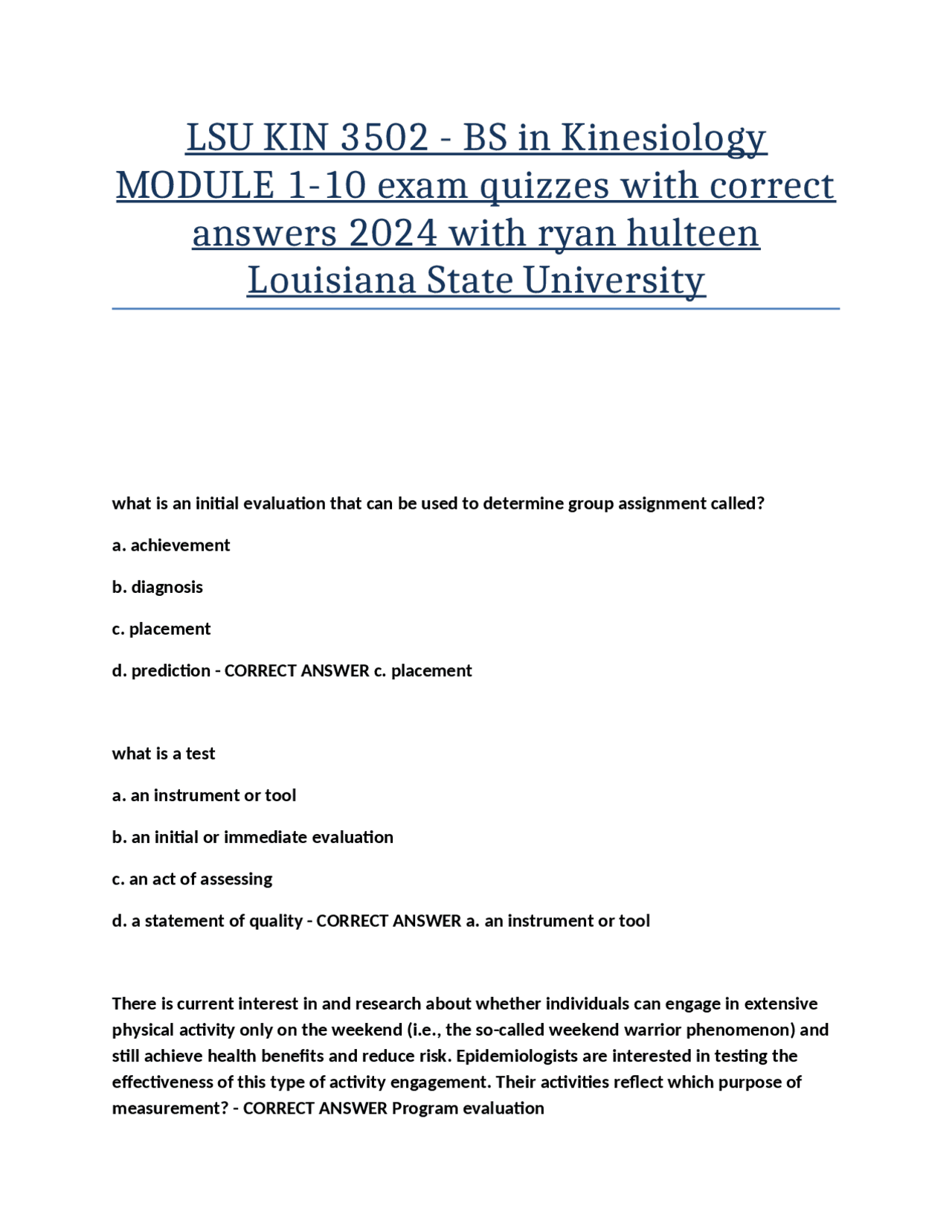 LSU KIN 3502 BS in Kinesiology MODULE 110 exam quizzes with correct