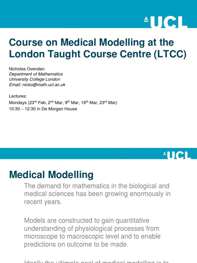Course On Medical Modelling at The London Taught Course Centre (LTCC