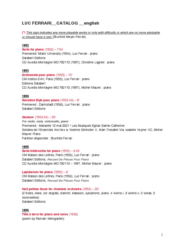 Luc Ferrari CATALOGUE EN PDF PDF Orchestras Cello