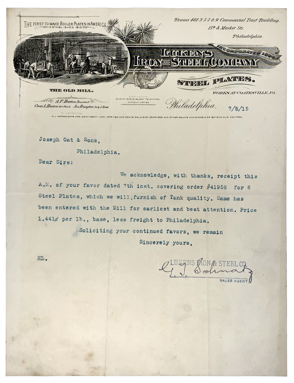 1915 Rare Lukens Iron & Steel Co. Letterhead (Longest continuously o