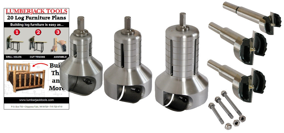 Lumberjack Tools Log Furniture Tenon Cutter Tool Kit — Pro Series 2Pc