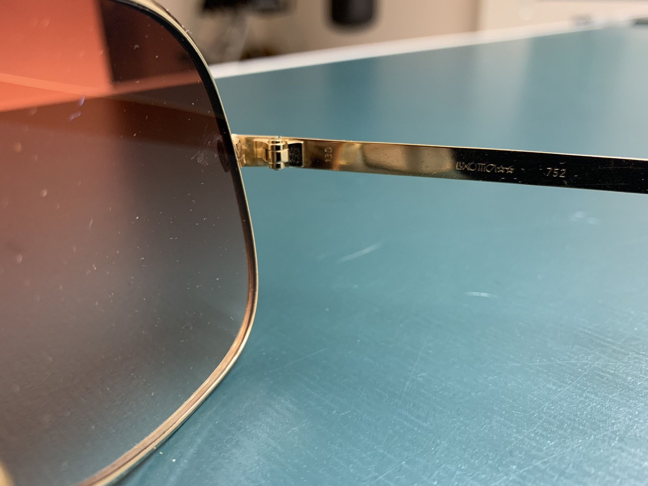 Luxottica goldenelectroplated vintage glasses frame For Sale at 1stDibs