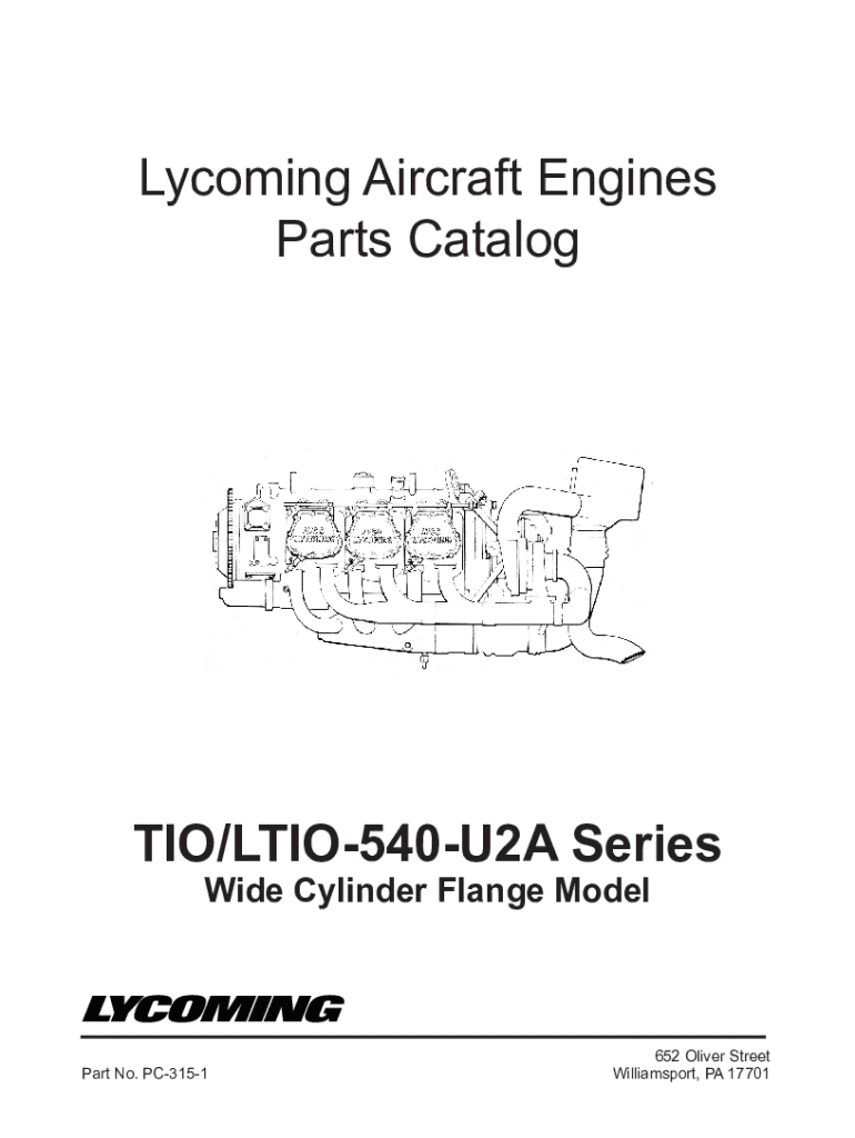 TIOLTIO540 Aircraft Engine Parts Manual PC3155 Aircraft