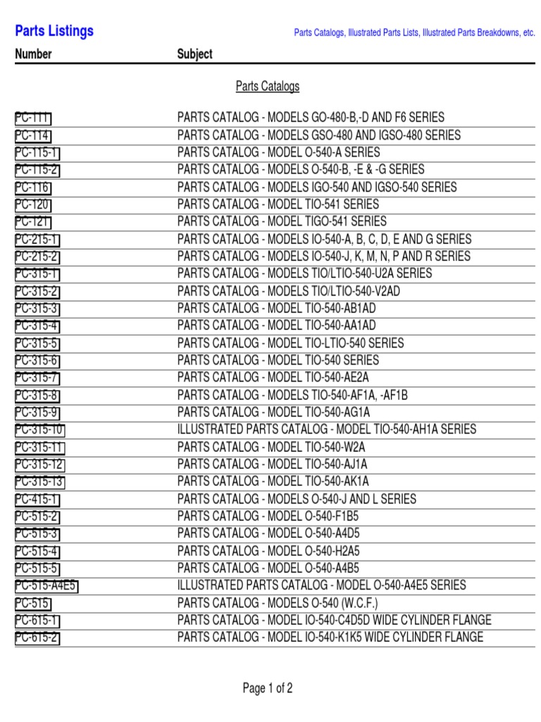 Lycoming Parts Catalog Pc-215-1