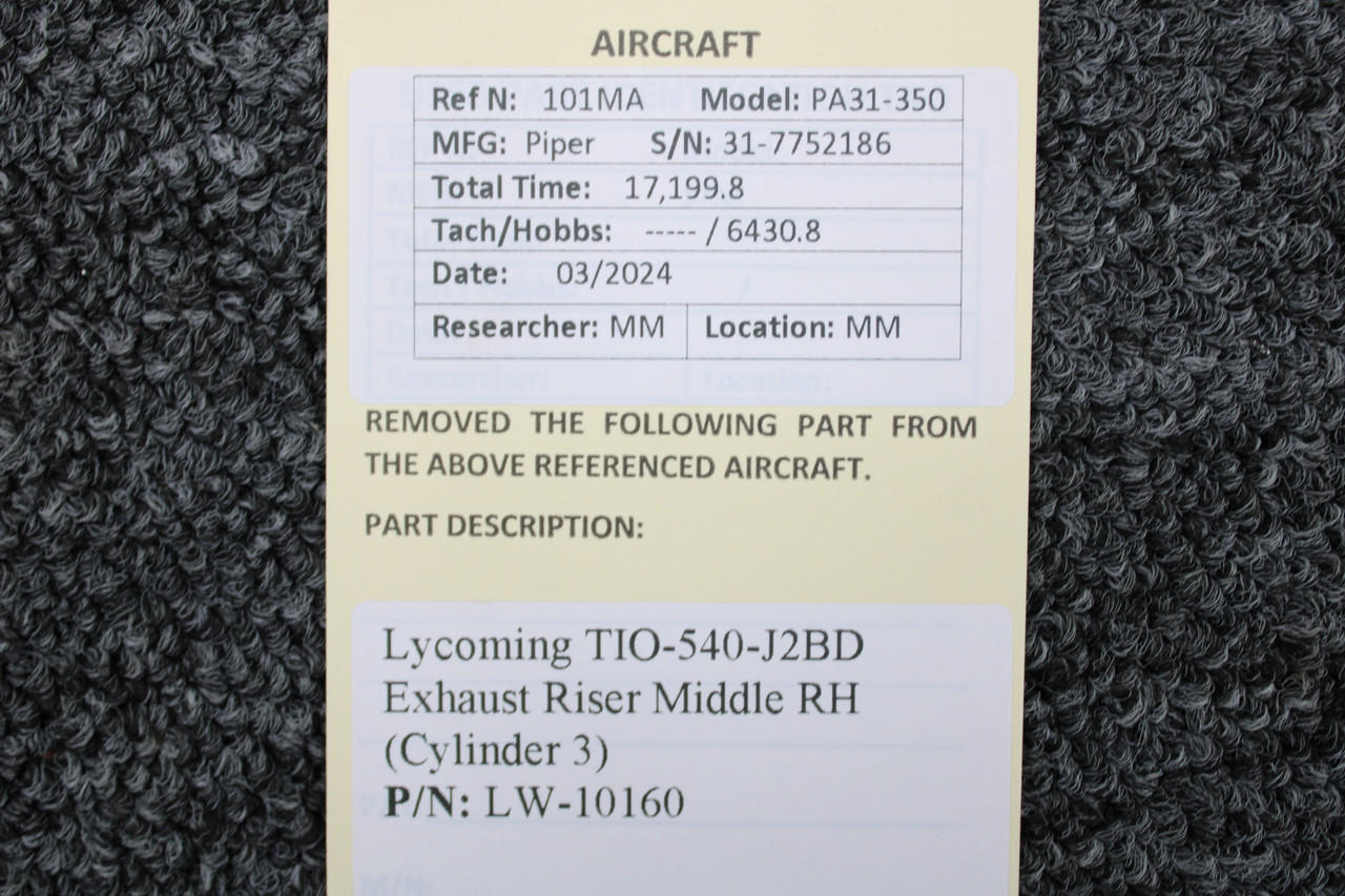 LW10160 TIO540J2BD Exhaust Riser RH Middle (Cylinder 3)