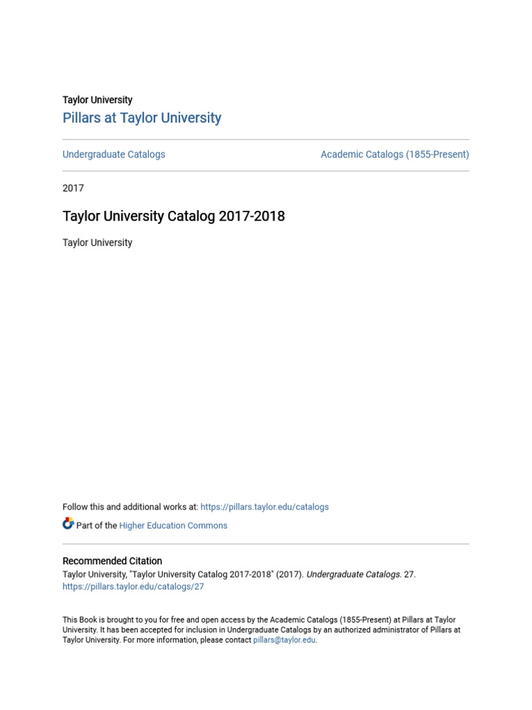Taylor University Catalog 20172018 PDF Bachelor's Degree College