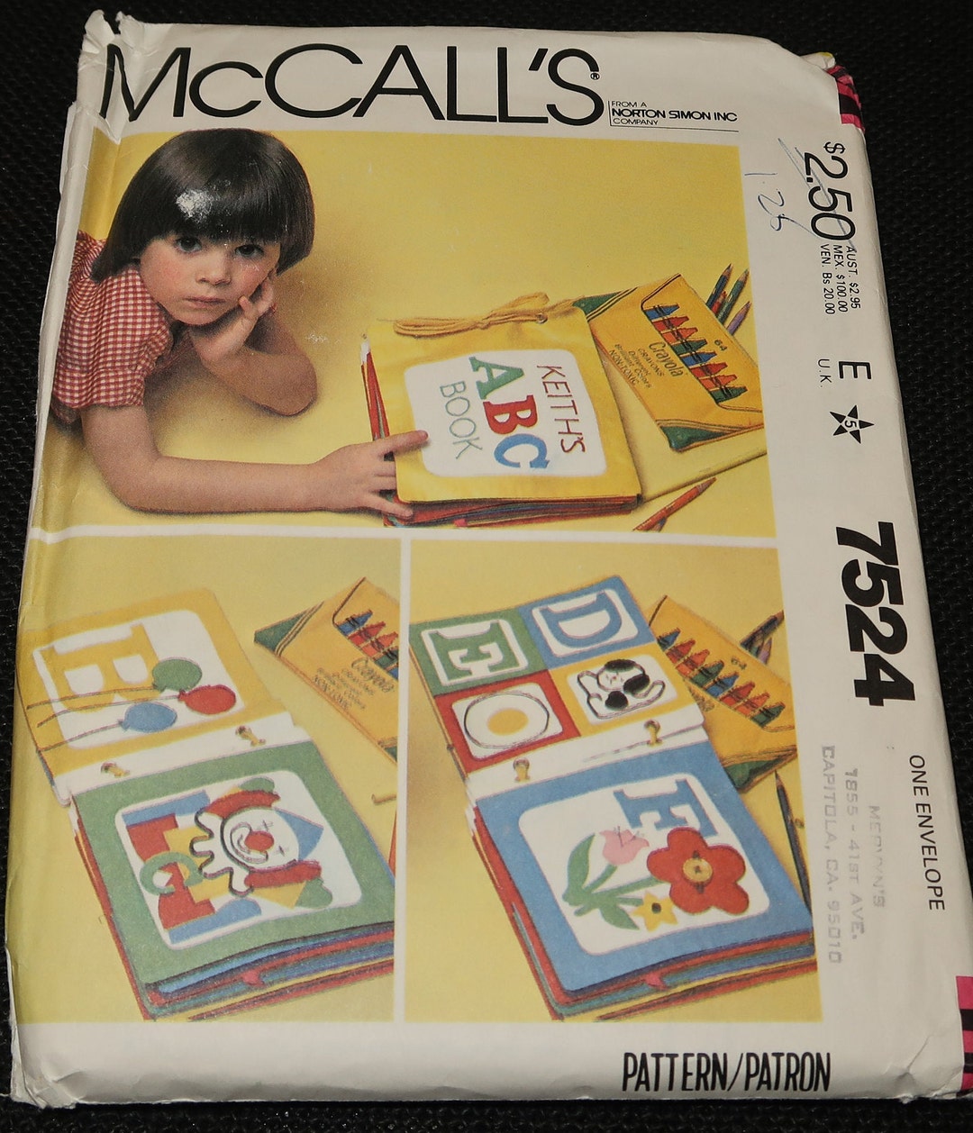 Mccalls 7524 Sewing Pattern Childs Vintage 80s Soft Book Craft With
