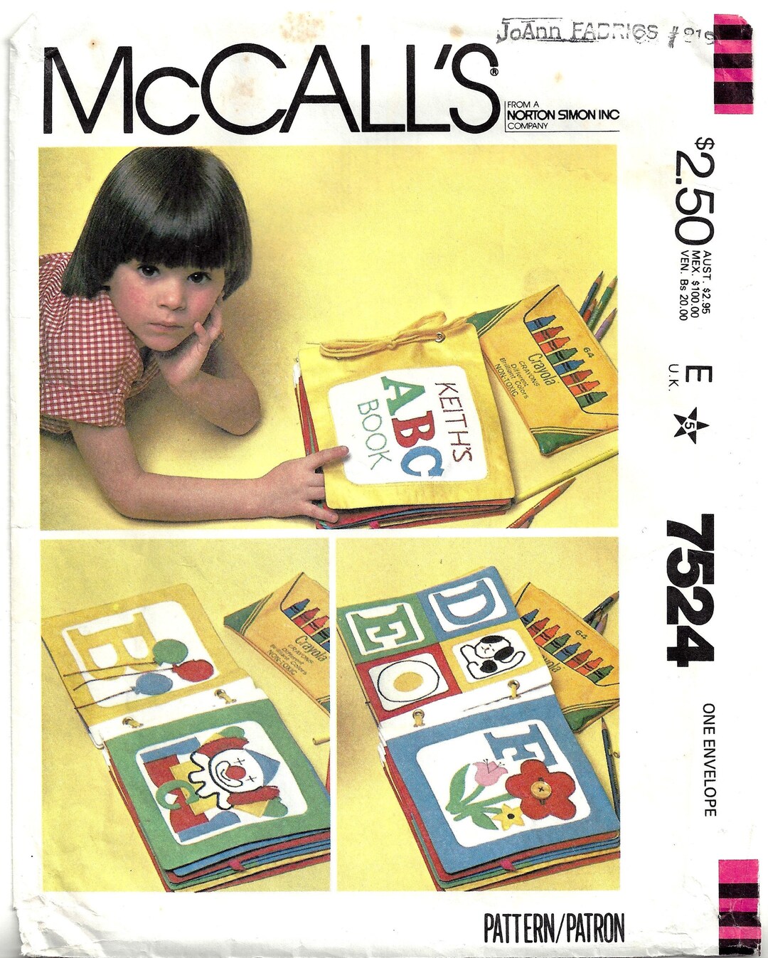 Mccall's Crafts Sewing Pattern 7524, Soft Book Craft, Vintage Pattern