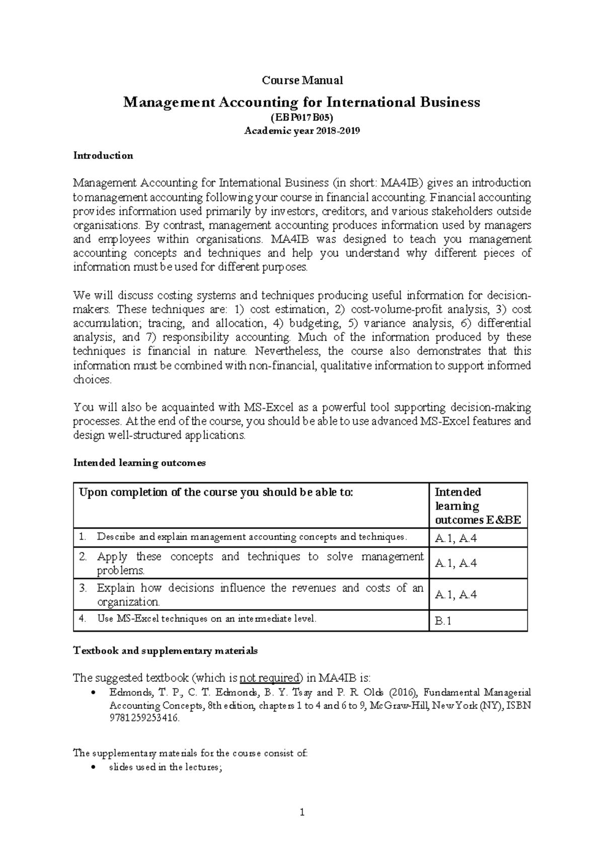 RUG 2019 MACC IB Course manual Course Manual Management Accounting
