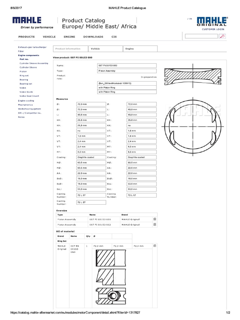 Mahle Product Catalog PDF Piston Engines