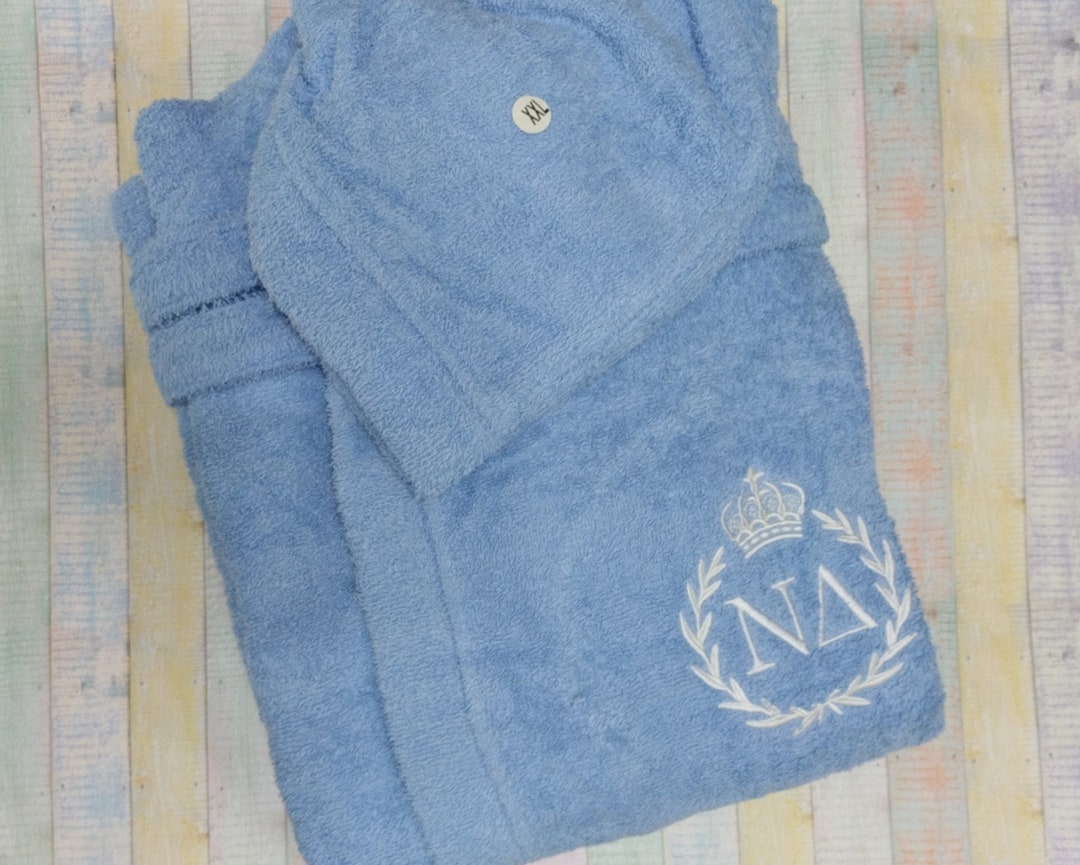 Terry Bathrobe Olive Wreath, Crown and Name Custom Text Unisex Terry