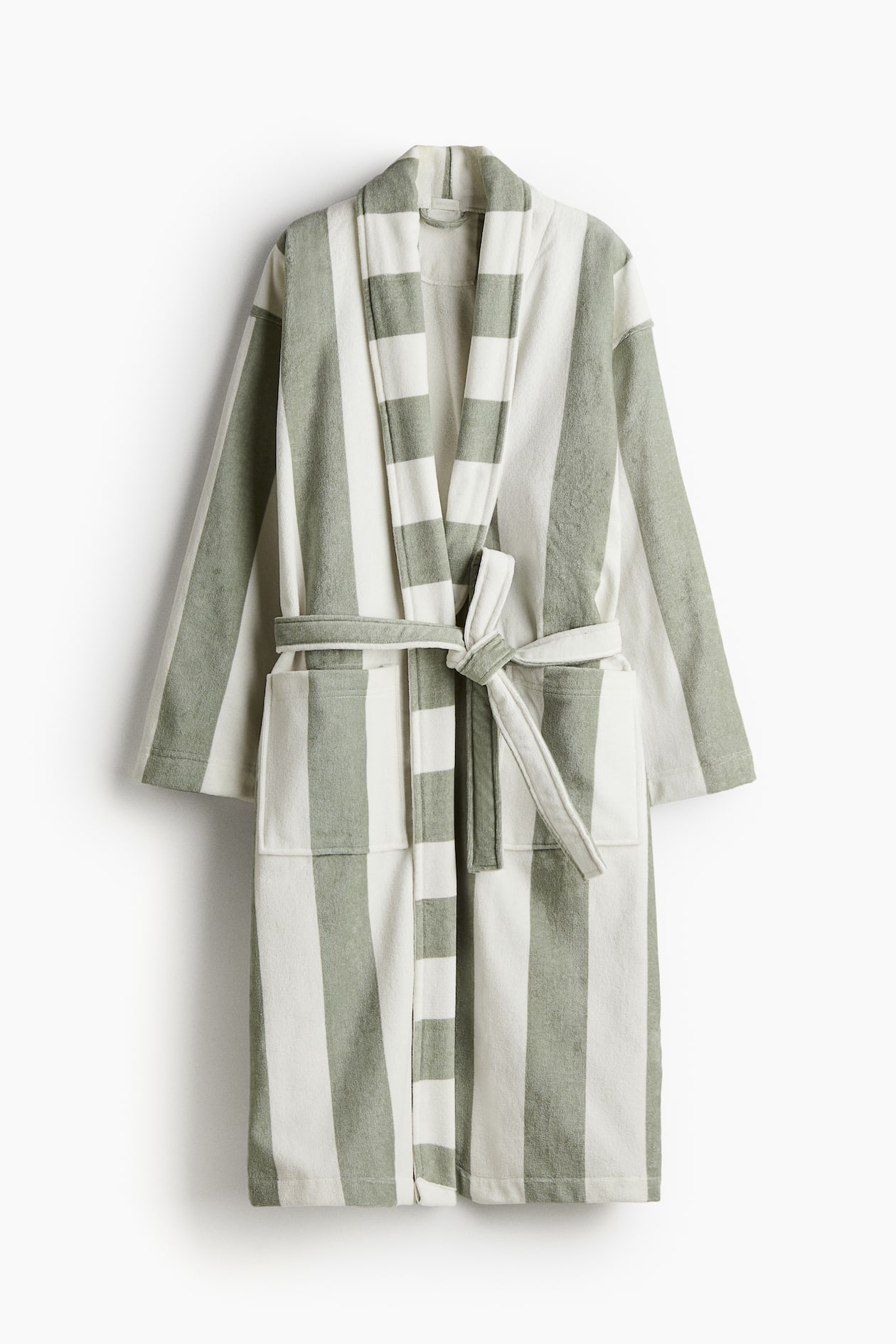 Striped Cotton Terry Bathrobe Sage green/striped Home All H&M US