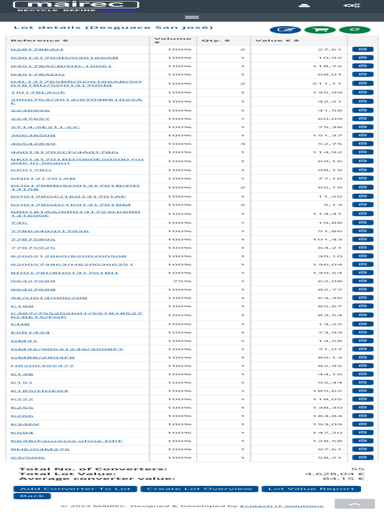 MAIREC Precious Metal Recycling Automotive Catalysts